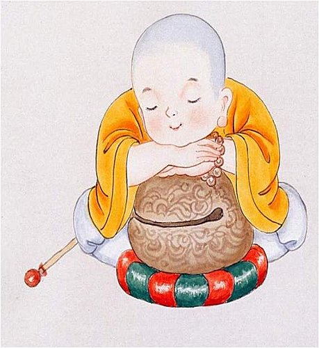 有一天,他在廚房擺放碗筷,老和尚看一看,就問他:「小沙彌,你現在在做什麼?」小沙彌回答:「我在擺碗筷。」老和尚又問:「你的心在想什麼?」小沙彌說:「什麼都沒有想。」