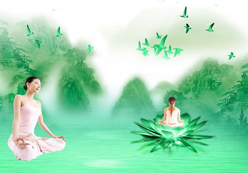 (1)盤腿坐式:分雙盤、單盤、自由盤。雙盤為左腳放在右大腿上,右腳放在左大腿上,雙手相合置於小腹前。這個坐法只是為了穩固不搖動,沒有相當功夫不易做到。單盤為左腿在上右腿在下,手勢如前。自由盤則是一般人習慣坐法。