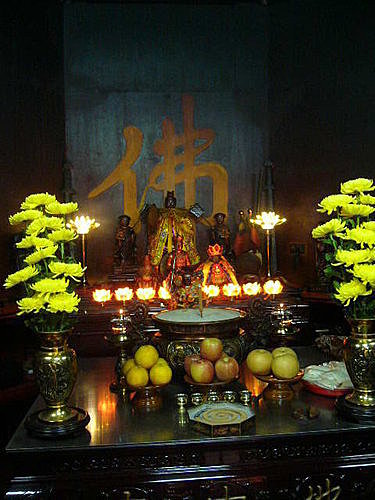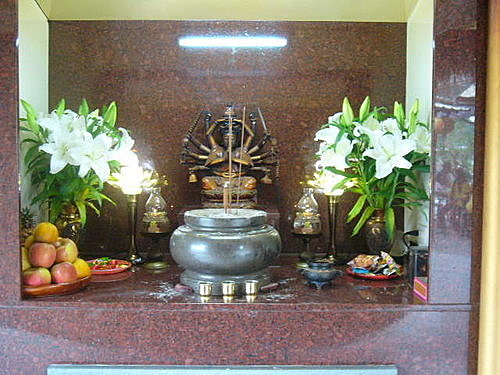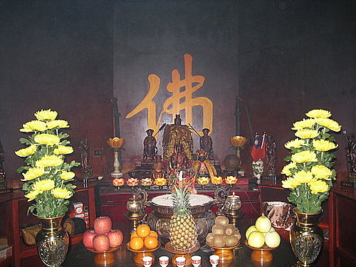 ~ 大殿的供桌朝向八卦茅草神殿的地母娘娘,因茅草神殿是禁止入內參拜,信徒只能在大殿上香祈願和在此打坐 ~