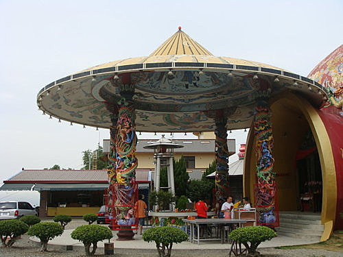 ~ 而夜晚時十九龍柱的三十八顆龍眼放射出兩萬瓦特的光芒,成為草屯東方最明顯的地標。