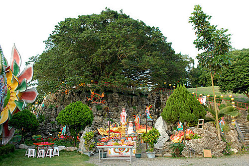慈德宮是榕樹嶺的主體建築之一,宮廟採葫蘆型建築,上笠型拜亭,廟身以泥塑的龍為雕飾,並成鮮紅,色設計繁複,可謂極盡華麗之能事。堂內供奉南無福德如來佛祖、南無福德如來佛、南無福德活佛、以及諸聖佛神共 56 尊,眾神齊聚一堂。