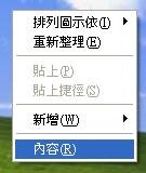 4.在桌面上按滑鼠右鍵,選擇「內容」