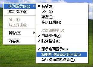 10. 在桌面任一空白的地方按滑鼠右鍵選「排列圖示」,不要勾「將網頁項目所定到桌面」。
