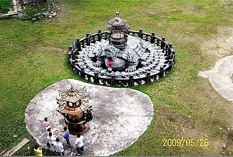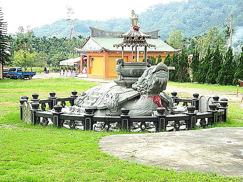 「玉泉寺」前有一座石雕的巨型龍龜背著一座香爐,底部也圍繞著四層小龍龜,造型非常特別,難得一見 ,這座香爐為「天爐」,據該廟師姊告知,此「天爐 」一年當中只開放五天,平常可將香插在石護欄上的廿只香爐