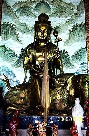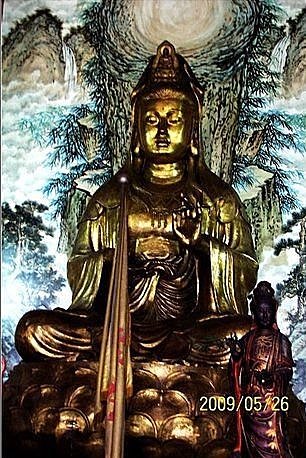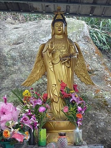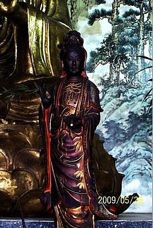 在正殿前的這尊神像,根據廟方師姐的介紹,這尊外觀看似 觀音菩薩的神尊即是「鳳凰母娘」降化時指示雕刻的樣子,頭上還插著髮釵