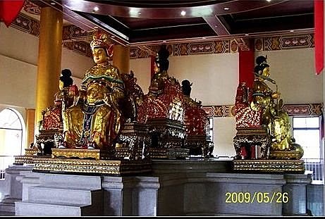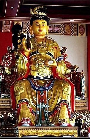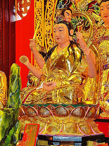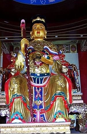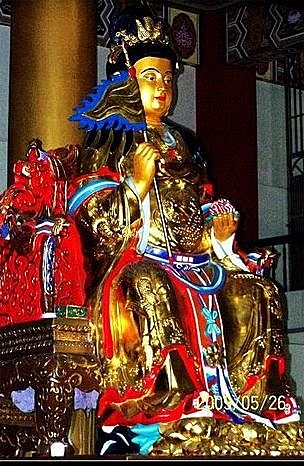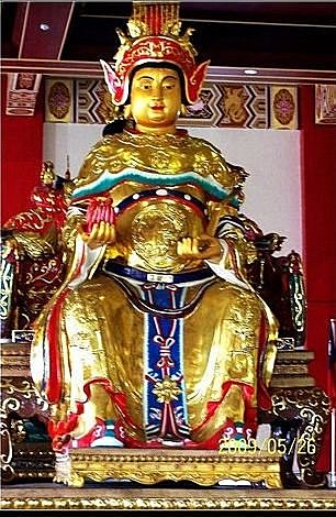 在正殿前這尊神明經常讓很多香客一頭霧水,搞不清楚到底是何方神聖?其實這尊難得一見的神尊就是「九天玄女」娘娘三頭六臂的化身像