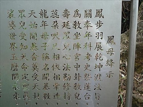 巨石旁豎立一塊牌子,上面為「鳳凰母娘」絳示的詩句